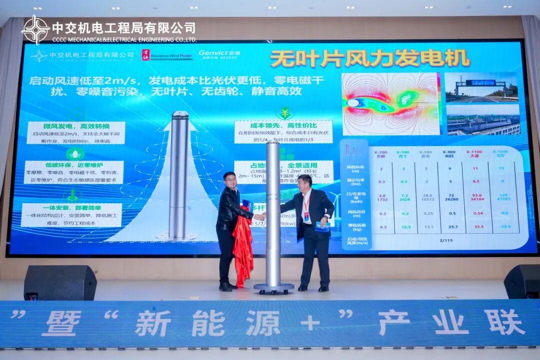 數(shù)字能源產(chǎn)品線總監(jiān)郭海陶、中交機(jī)電局副總經(jīng)理劉繼先,共同發(fā)布無葉片風(fēng)力發(fā)電機(jī)