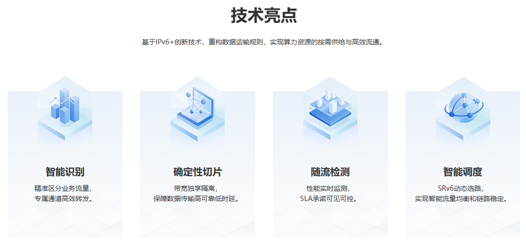大帶寬、高彈性、按需定制的數(shù)據(jù)傳輸服務(wù),對(duì)網(wǎng)絡(luò)的靈活高效、安全穩(wěn)定提出了更高要求。算力快線解決方案依托IPv6+創(chuàng)新技術(shù),構(gòu)筑了一個(gè)智能、可靠、可視的數(shù)據(jù)傳輸網(wǎng)絡(luò),確保海量數(shù)據(jù)遷移任務(wù)高效、穩(wěn)定、不間斷運(yùn)行。