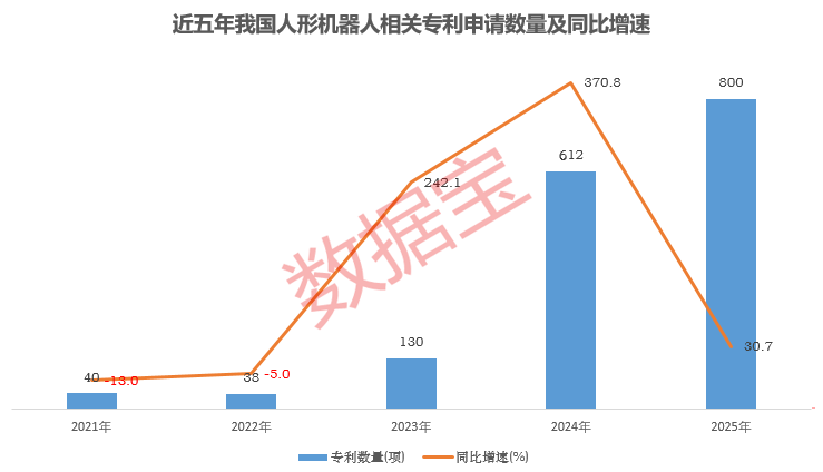 企查查數(shù)據(jù)顯示,截至目前,國(guó)內(nèi)現(xiàn)存人形機(jī)器人相關(guān)專利達(dá)2000余項(xiàng)。2021年以來(lái),我國(guó)累計(jì)申請(qǐng)人形機(jī)器人相關(guān)專利1620項(xiàng)。2025年全年,我國(guó)累計(jì)申請(qǐng)800項(xiàng)人形機(jī)器人相關(guān)專利,同比增長(zhǎng)30.7%,創(chuàng)近五年相關(guān)專利申請(qǐng)量新高。