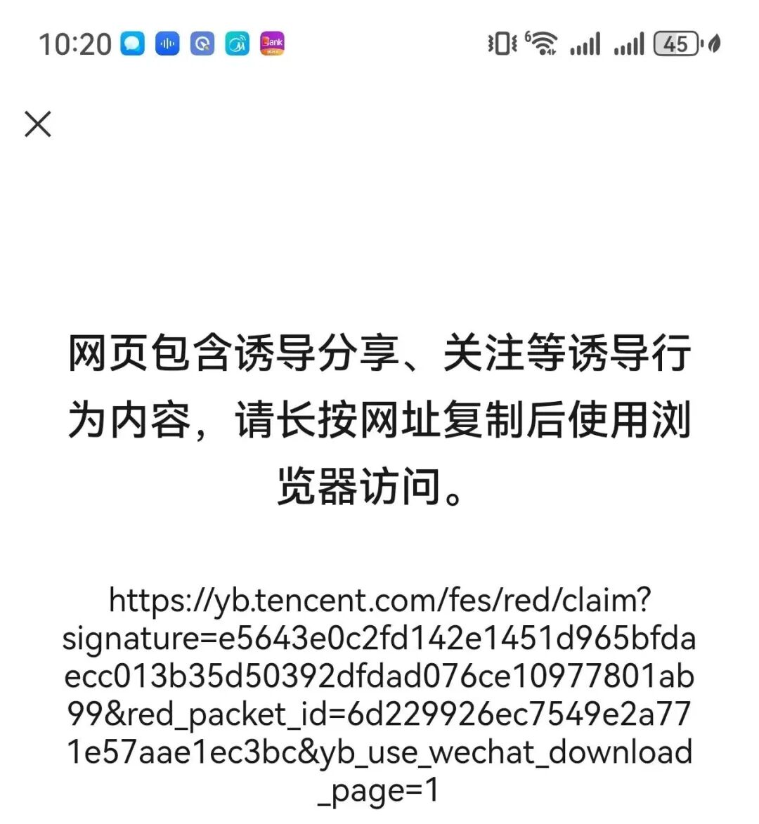 當(dāng)日上午,微信派官方公眾號表示,收到用戶針對元寶的反饋和投訴,其相關(guān)春節(jié)營銷活動存在通過“做任務(wù)”“領(lǐng)紅包”等方式誘導(dǎo)用戶高頻分享鏈接到微信群等場景,干擾平臺生態(tài)秩序、影響用戶體驗(yàn)、對用戶造成騷擾。經(jīng)研判,對元寶的違規(guī)鏈接進(jìn)行處置,限制其在微信內(nèi)直接打開。相關(guān)處置措施即日生效。