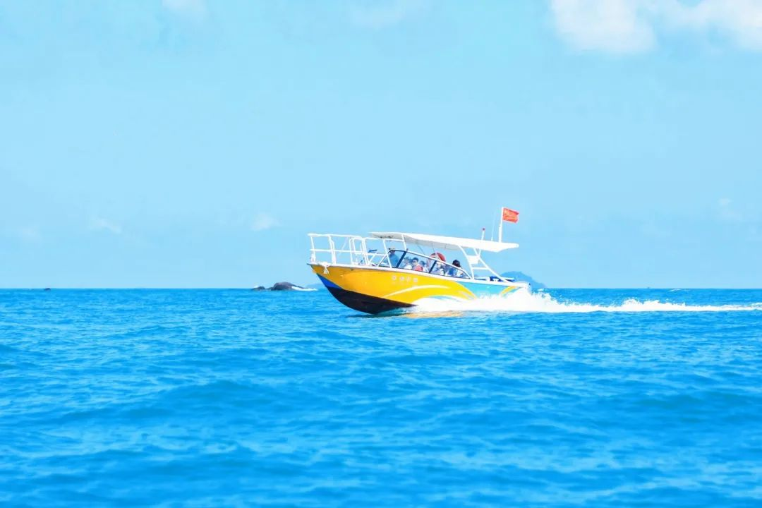 坐上海上觀光艇向大海出發(fā),遼闊的海面平展地向兩側(cè)和遠(yuǎn)處鋪開,海天相連,一眼望不到邊,仿佛一顆巨大的藍(lán)色寶石等著你去細(xì)細(xì)欣賞