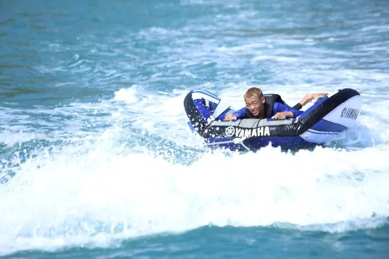 大飛魚在快艇的牽引下極速飛馳,隨著快艇向左,向右疾馳,不時(shí)還會(huì)猛地騰空飛起,刺激程度拉滿,讓你尖叫連連,可要抓緊把手哦!