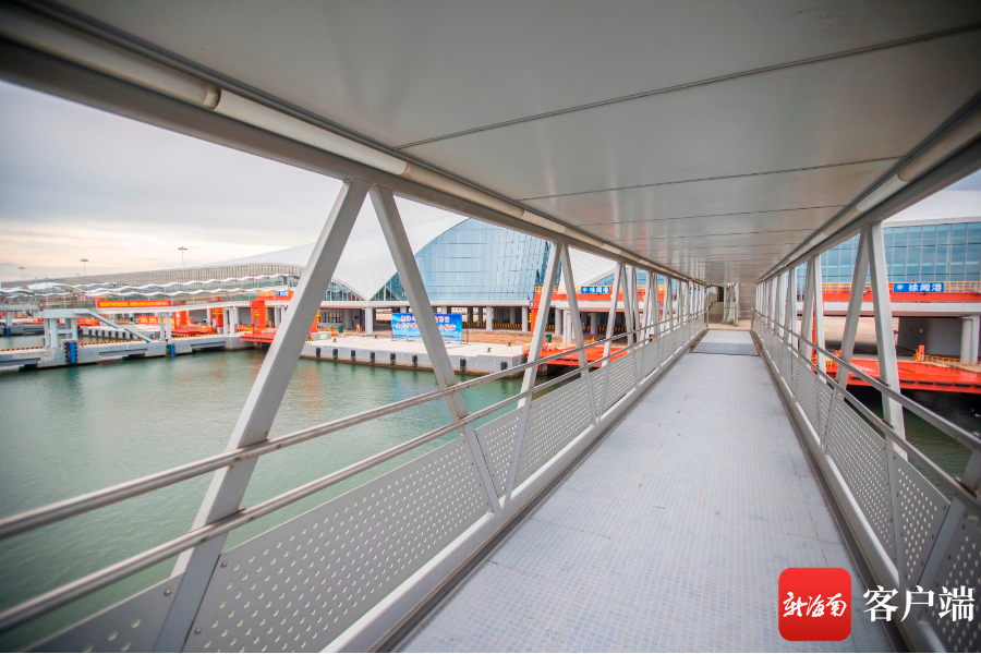 旅客進(jìn)入出發(fā)大廳購票后,往前走幾十米就能在智能設(shè)備上自助掃碼驗(yàn)票,“刷臉”進(jìn)行人證比對,進(jìn)入候船區(qū)。雖然綜合交通樞紐大樓很大,但經(jīng)過動(dòng)線設(shè)計(jì)優(yōu)化后,8分鐘以內(nèi)旅客就能走到登船口。登船口到客滾船之間有旅客登船橋,方式很像飛機(jī)場的登機(jī)廊橋。